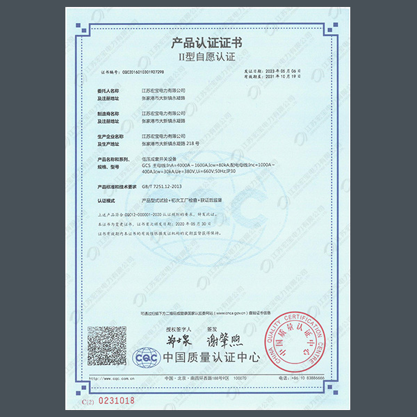 CQC認證證書